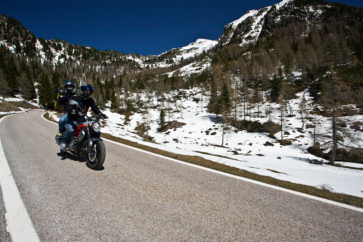 È successo ieri con mia figlia Ester e il suo ragazzo, Federico. Un bellissimo giro fra la Val di Cembra e il Passo Manghen, ancora scintillante di neve.