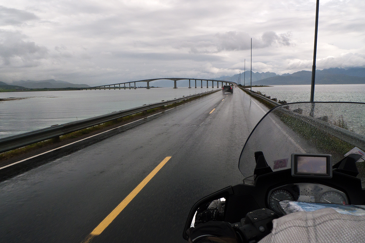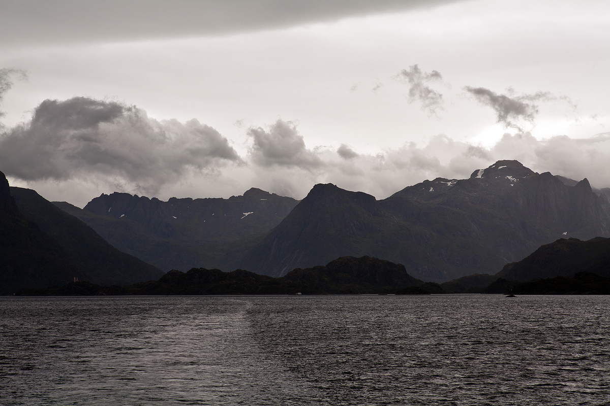 Dopo Henningsaer, Svolvær, importante città di scambio, nella quale non entriamo per dirigerci subito a nord lungo l’Austnesfjorden e lo Sløvenfjorden. Continua a piovere e le nuvole basse ci precludono lo sguardo sulle montagne circostanti.