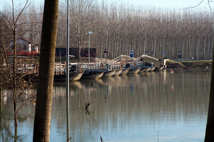 Nascosti nelle pieghe della campagna, lontano – per quanto possibile – dalle grandi via di comunicazione, si ritrovano ancora piccoli gioielli, preziosi nel loro anacronismo. È il caso dei due ponti di barche gettati l’uno sul fiume Oglio e l’altro sul canale di bonifica Navarone, a poca distanza tra loro in provincia di Mantova. Aggiungiamo anche lo stabilimento idrovoro di Borgoforte in località Roncocorrente, imponente opera della bonifica, edificata con l’uso del laterizio, dei marmi e del ferro battuto in una bella sintesi degli aspetti funzionali e di quelli estetici.