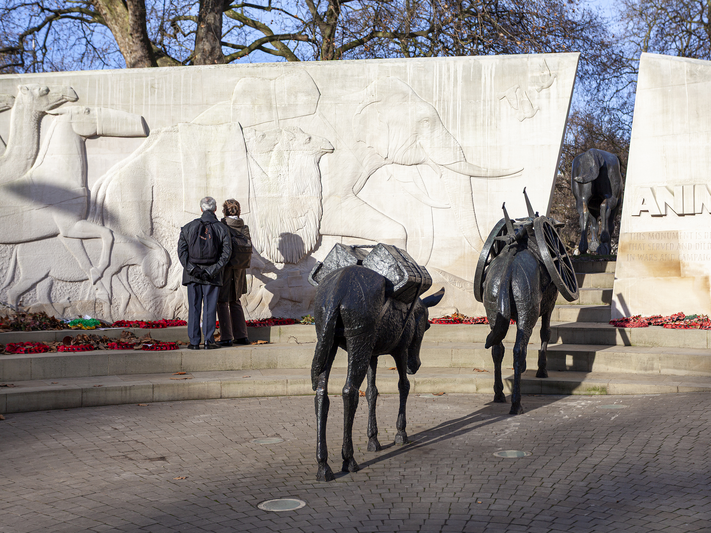 Quello che ho descritto non è un sogno, o un incubo; è un monumento. Si trova a Londra in Hyde Park ed è un potente e commovente omaggio a tutti gli animali che servirono, soffrirono e morirono a fianco delle forze inglesi, del Commonwealth e degli alleati nelle guerre del 20° secolo. A me piace pensare che il monumento sia dedicato anche agli animali portati al fronte dagli avversari.