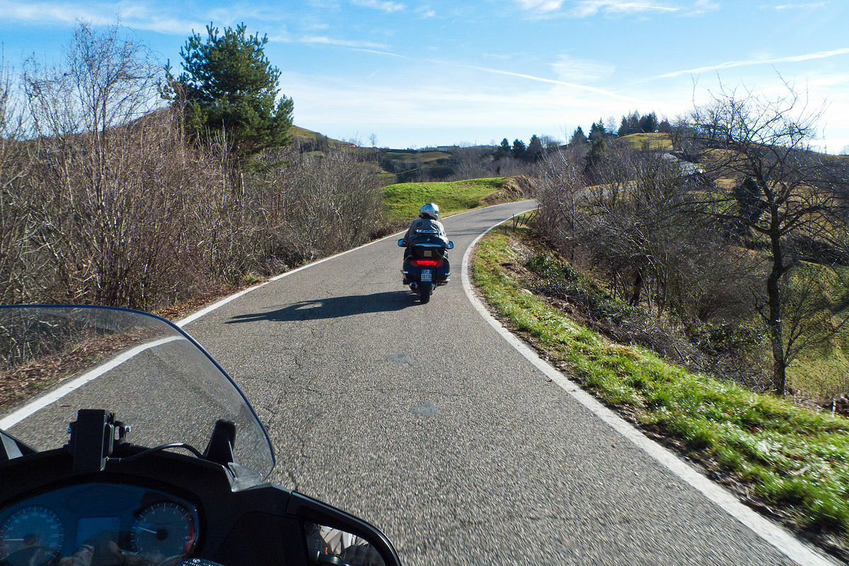 “Sereno fatto di notte non vale tre pere cotte”. Sarà vero, ma intanto ne approfittiamo per riprendere in mano la motocicletta dopo un paio di mesi in cui è rimasta ferma in garage. Ho voglia di passare una giornata a pensare solo come impostare al meglio una curva; a sentire la vibrazione leggera del motore nei polsi e la spinta ruvida dell’accelerazione improvvisa; a ghiacciarmi il naso nell’aria sottile di Gennaio.