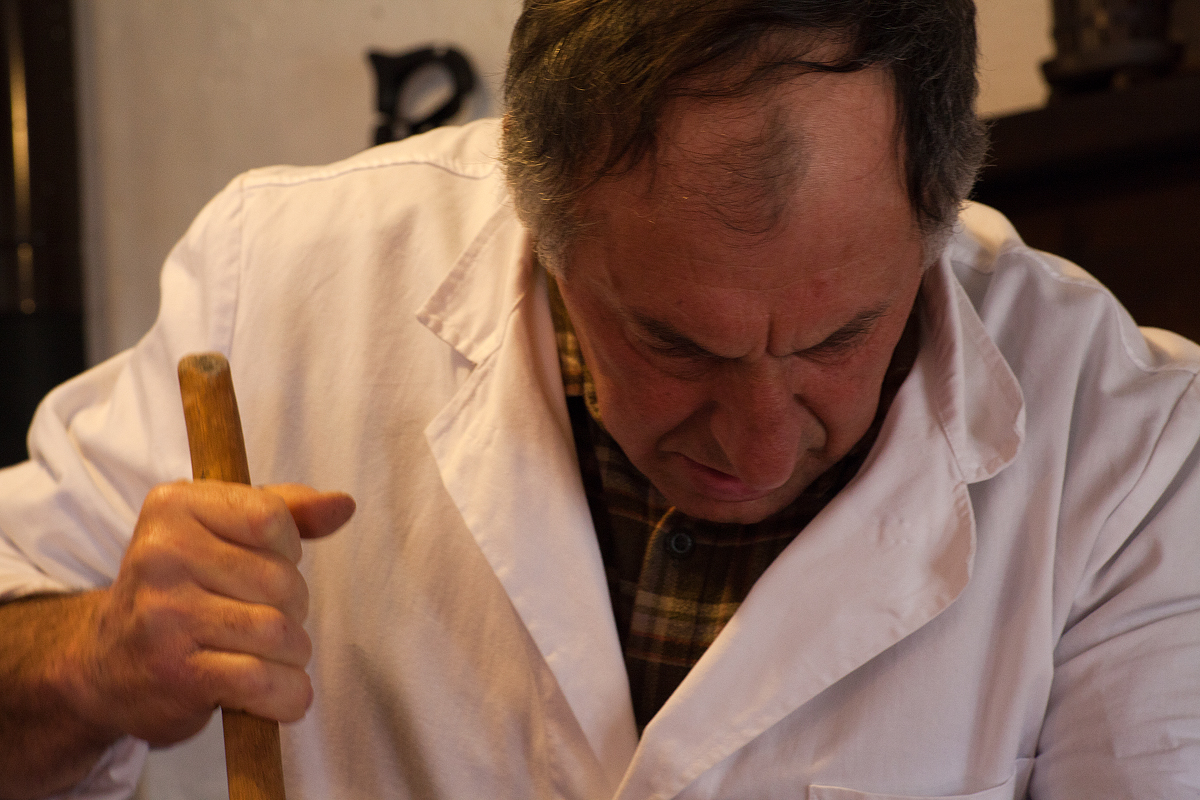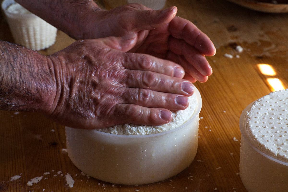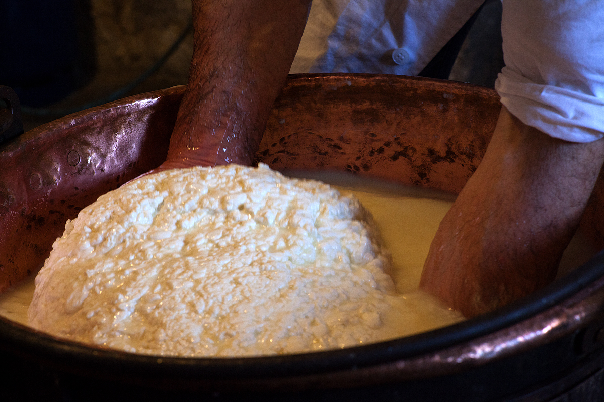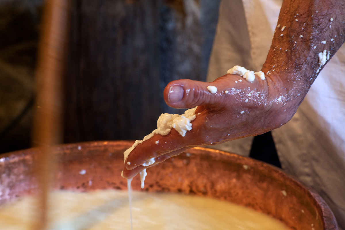 Per fare il formaggio, il casaro non ha bisogno di molti attrezzi. Quelli più importanti sono le mani e gli occhi. Con le mani il casaro versa, gira, tasta, accarezza, sminuzza, raccoglie, taglia, dà forma. Quando la cagliata è pronta, sembra la levatrice che mette al mondo una creatura. Ho il sospetto che le mani del casaro godano quando fanno il formaggio.