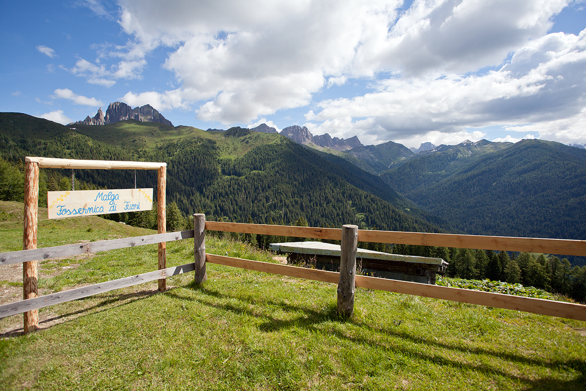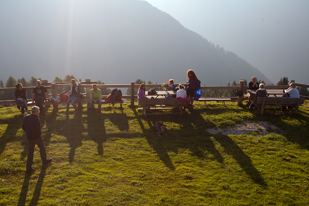 Il sole è alto nel cielo e la colazione prosegue nello spiazzo davanti alla malga, cercando di dare un nome alle vette scure del Lagorai e alle lontane Pale di San Martino.