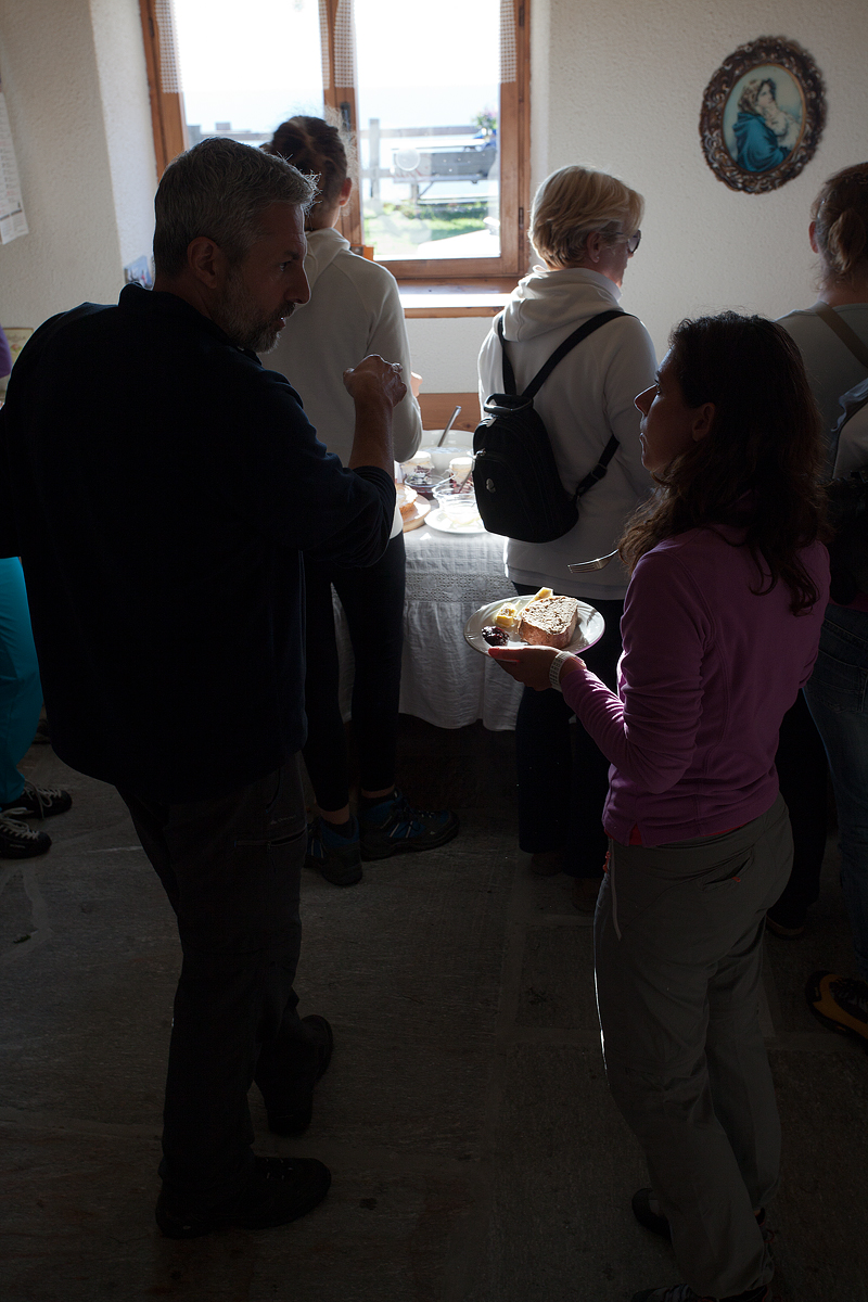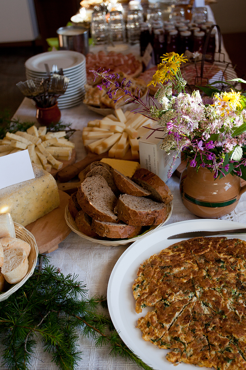 IMG_0356Quattro chiacchiere oziose in attesa della colazione che si rivela un banchetto: le torte e i biscottini della Giovanna di Fossernica di Dentro, le marmellate e i succhi di Dalaip de Pape, i formaggi del Caseificio di Primiero, i salumi di Bonelli e, naturalmente, il Botìro di Primiero al posto d’onore.