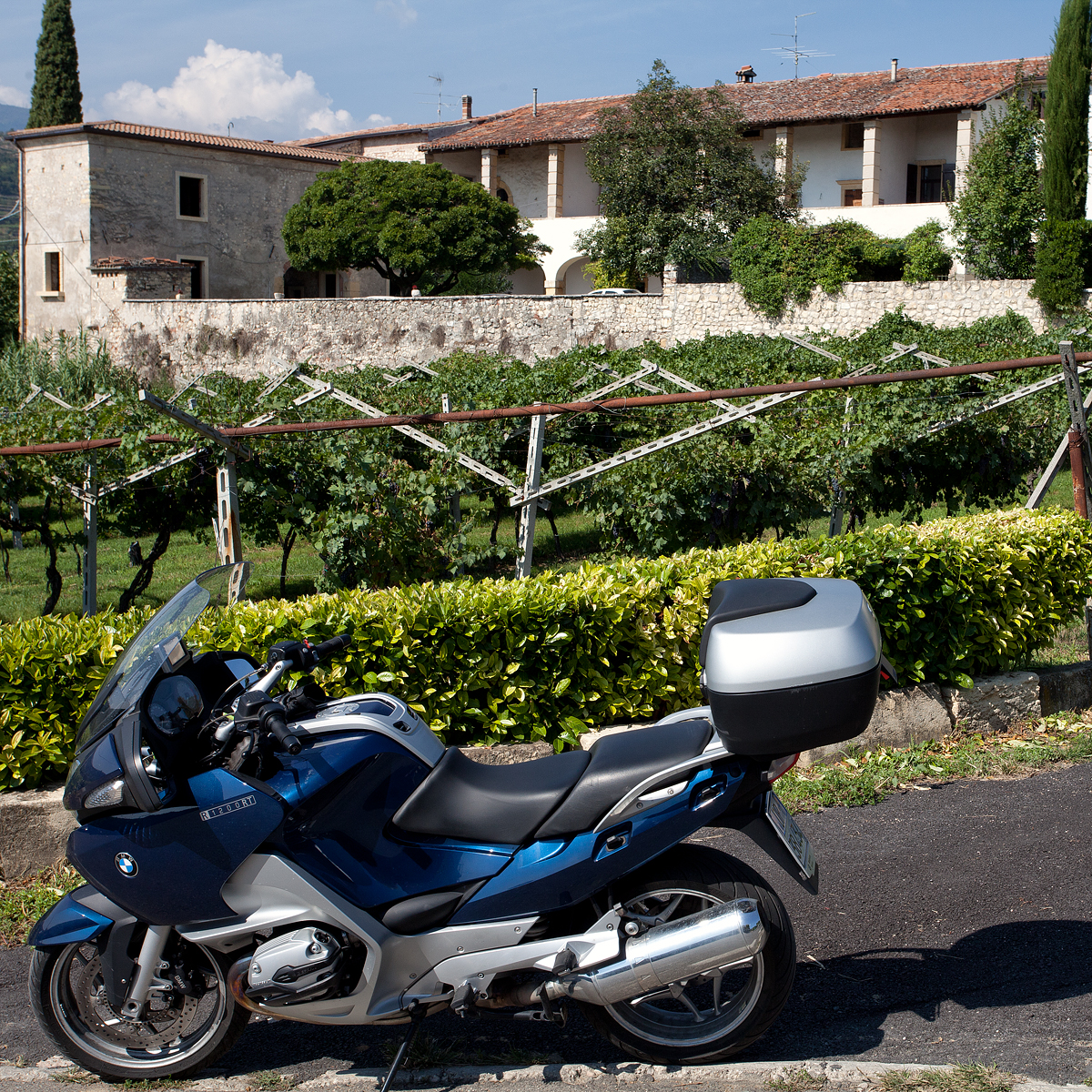 È bello girare fra le colline viticole con la motocicletta e non c’è mezzo migliore per goderne il paesaggio: a bassa velocità, senza gli angoli ciechi che l’automobile ti impone, accompagnando e non subendo le variazioni di direzione, ora a destra e ora a sinistra.