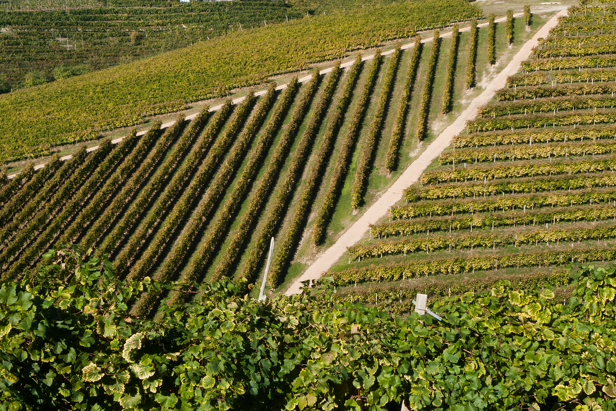 Stradine si arrampicano e ruzzolano fra le viti disposte a cavalcapoggio o a rittochino. Laddove la pendenza si fa più ripida, il vigneto diventa un muro di sassi che svela il suo segreto solo quando i tornanti ti ci portano sopra. Un cipresso, isolato all’angolo dei filari, ti fa interrogare sulle genti che l’hanno piantato e ti chiedi quale nascita continui a ricordare e se c’è ancora qualcuno che la ricordi.