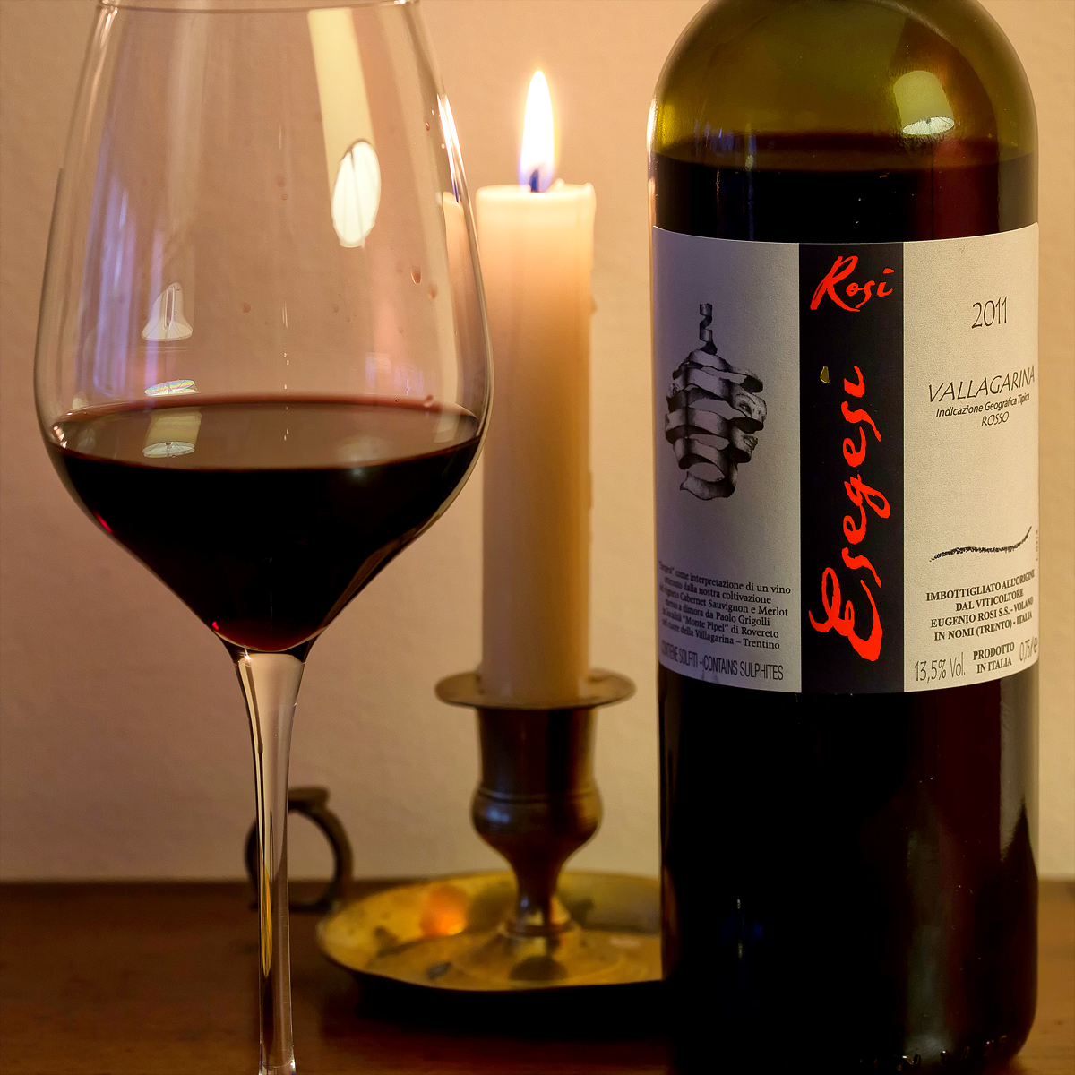 L’Esegesi è la prima etichetta di Eugenio di cui assaggio l’annata 2011, l’ultima ad essere messa in commercio. Denso e rubino vivace, il naso apre con profumi erbacei (muschio, sottobosco), frutti di bosco, cenni di radici e note balsamiche. In bocca dominano un po’ le durezze e i tannini di per sé fini potranno ancora addolcirsi. Si confermano gli aromi della frutta matura e le note silvestri del sottobosco e della felce. L’Esegesi 2006 accentua il carattere di mistero dei profumi e del gusto, mantenendo freschezze e sapidità.