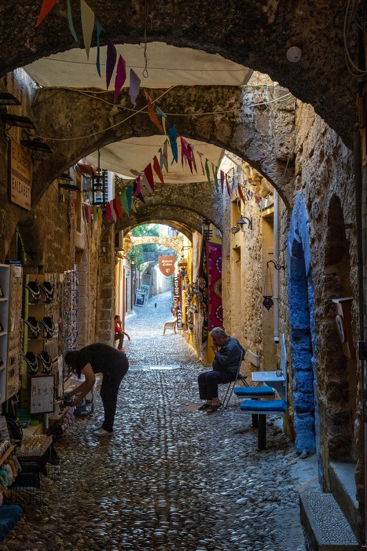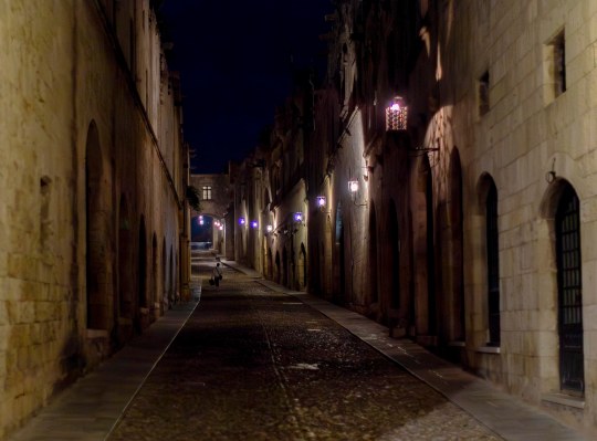 La notte indugiamo in Odos Ippoton, la via dei Cavalieri, misteriosa e desolata nell’oscurità. Lì è rimasta intatta la pietra degli alberghi dell’Ordine, in un’atmosfera sospesa che si coglie meglio la notte, come se l’abbandono della città da parte degli Ospitalieri di San Giovanni fosse appena accaduto. E invece sono passati cinquecento anni da quel primo di gennaio 1523 quando Solimano il Magnifico riuscì ad ottenere la resa dei Cavalieri.