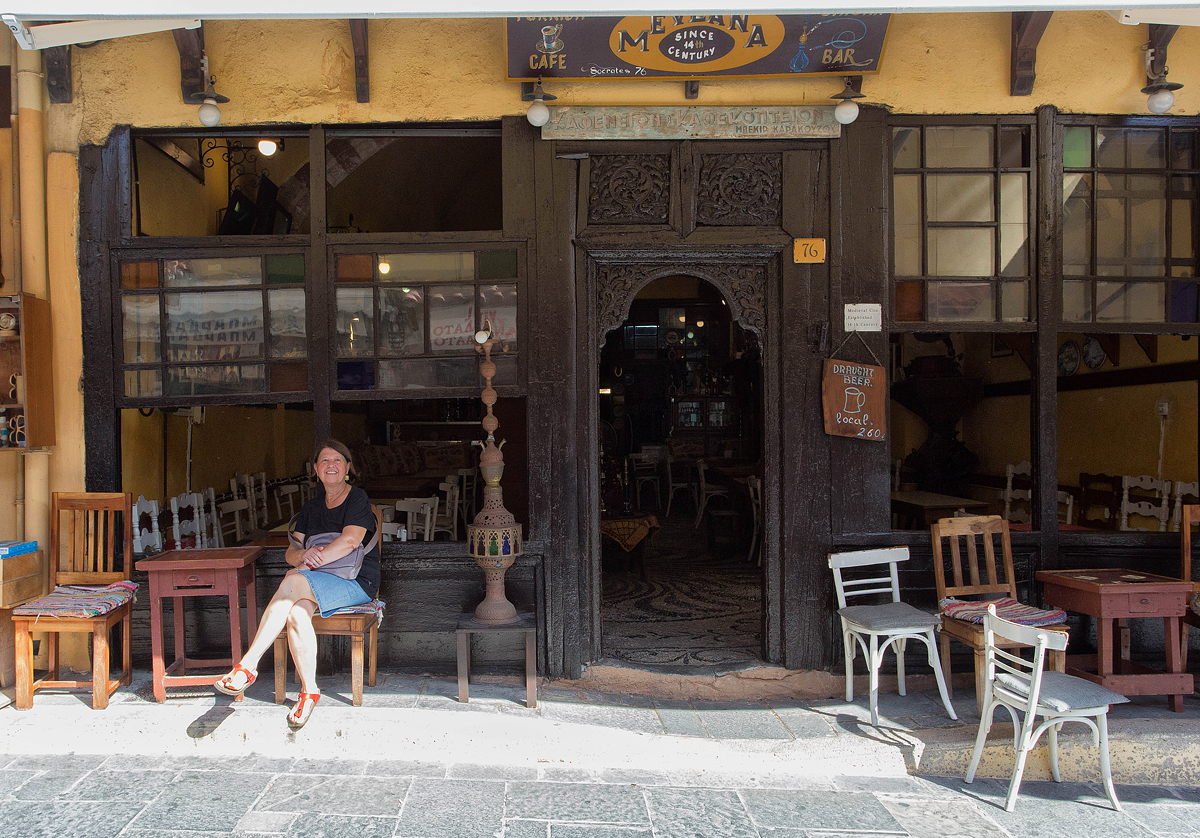 Passiamo lunghe ore al Kafeníon Bekir Karakusu a sorseggiare caffè frappé, ammirare il pavimento chochlakici e gettare occhiate distratte ai passanti.