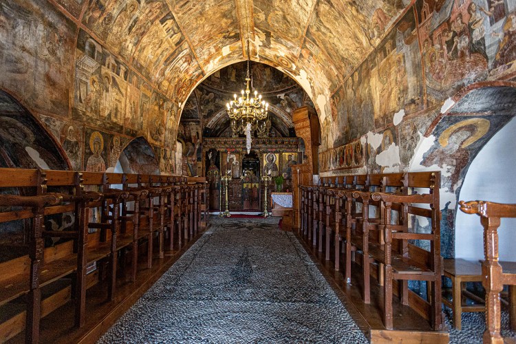 Ad Asklipío, borgo di per sé insignificante, visitiamo la chiesa della dormizione di Maria e i fastosi affreschi con scene dell’Antico e del Nuovo Testamento.