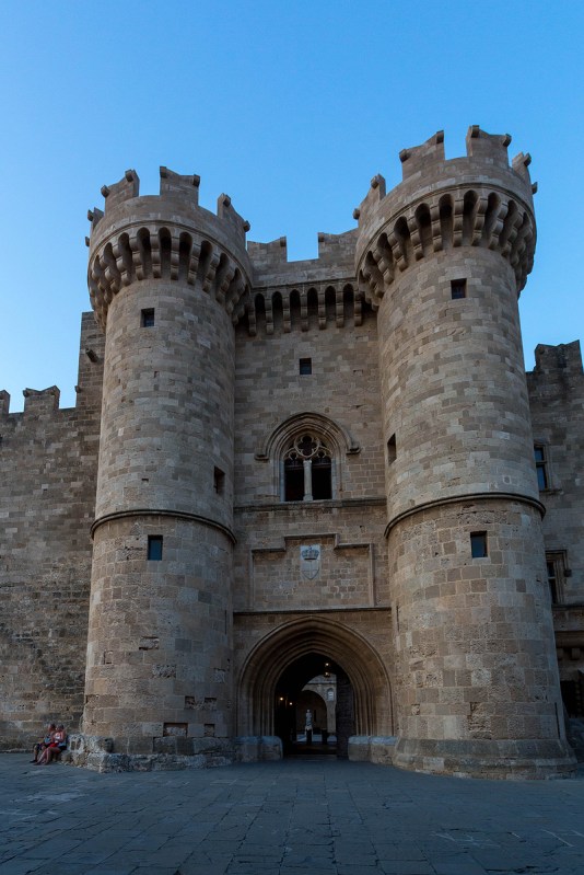 Il Palazzo del Gran Maestro dei Cavalieri, distrutto nel 1856 dall’esplosione di una Santabarbara ottomana e ricostruito dall’architetto Vittorio Mesturino durante la fugace avventura italiana nel Dodecanneso, rende bene l’idea della potenza dell’Ordine degli Ospitalieri. L’ingresso principale, con le imponenti torri, è uno dei pochi elementi originali del palazzo ricostruito da Mesturino. Gli interni denunciano una deriva romantica e stereotipata un po’ disneyana. Una lapide murata all’ingresso ricorda le ambizioni di Mussolini e di re Vittorio Emanuele III sull’isola e sul Dodecanneso.