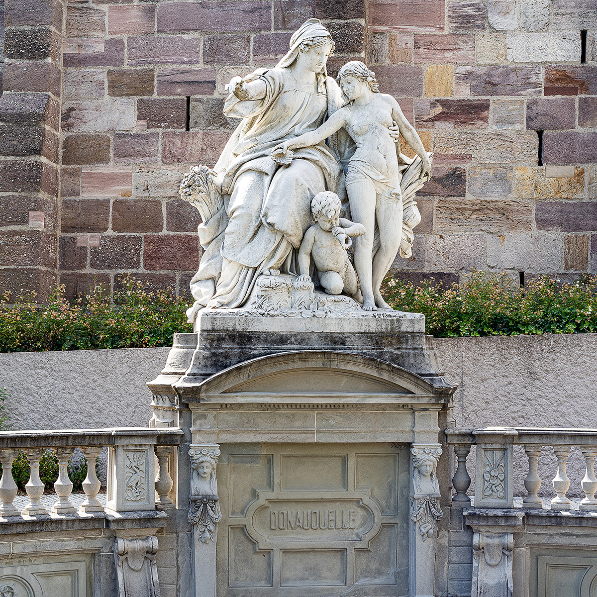 Fra gli edifici, la Donauquelle, la risorgiva più importante delle ventidue che sgorgano all’incrocio di Brigach e Berg. La sorgente è incastonata in un complesso marmoreo austero e solenne; rappresenta la “Madre Baar” che indica la strada verso il mare al giovane Danubio.