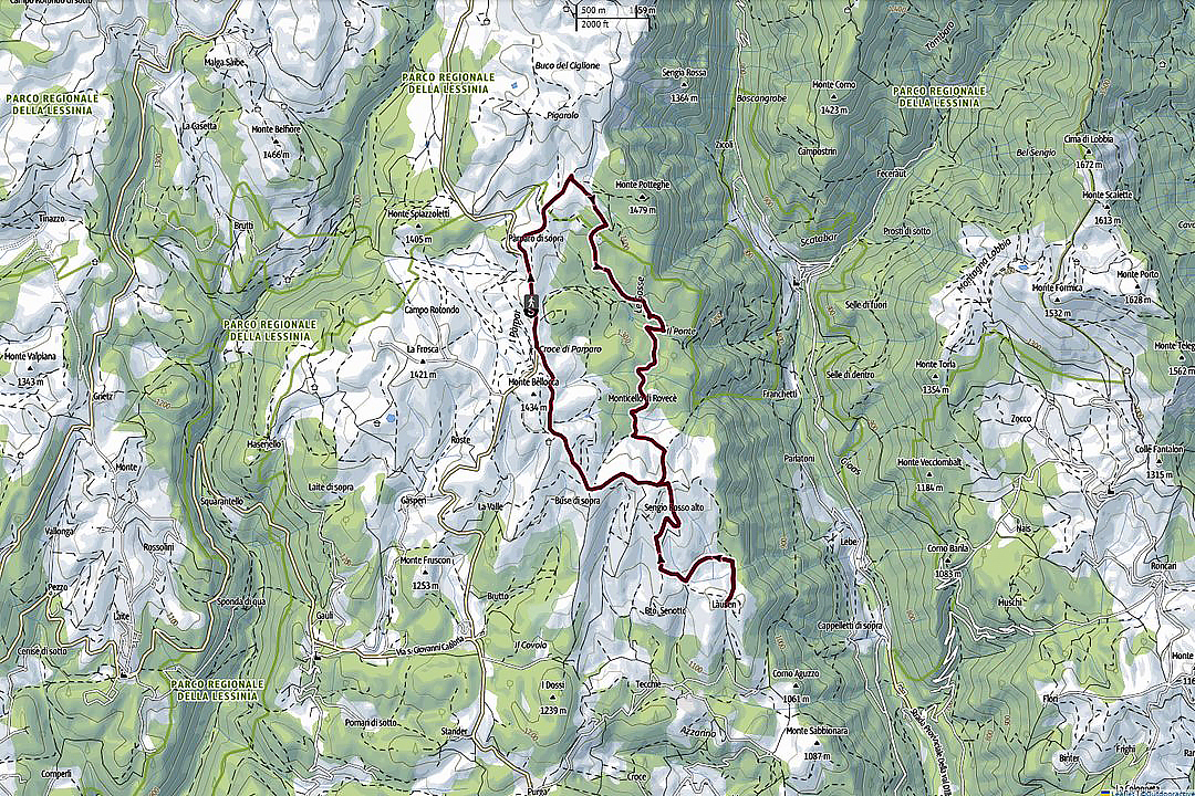 La meta è il Rifugio Lausen dove ristorarsi con i piatti semplici della tradizione prima di intraprendere la via del ritorno che non scende ancora nel Bosco delle Gosse, ma percorre il fianco orientale del Monte Bellocca.